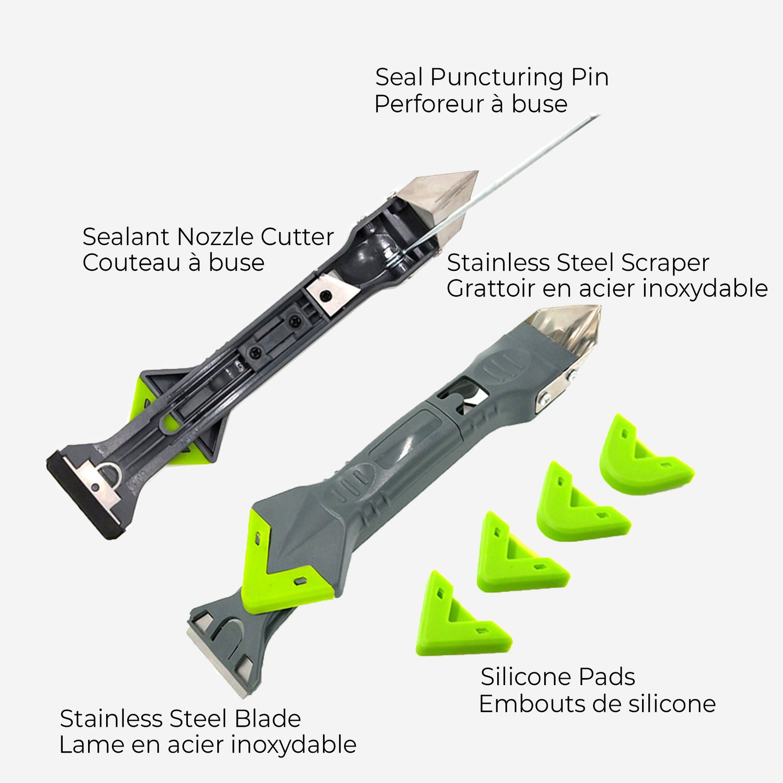 - Embout de silicone et racloir en acier inox de remplacement disponible